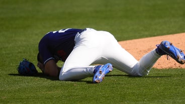 Bobby Miller left the first spring training game after the injury knocked him to the ground.