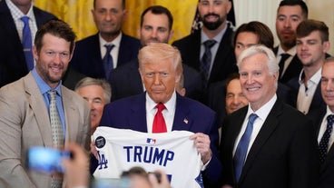 The president couldn't resist throwing some shade during the MLB champions' visit to Washington, D.C.