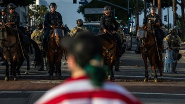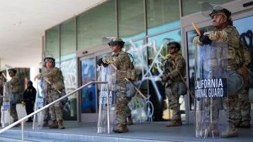 Marines were seen standing guard outside a federal building in Los Angeles on Friday as they started operations after protests erupted last week over immigration raids.